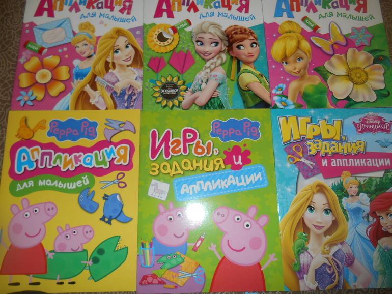 Хорошие тетрадочки, листов не много сразу говорю. Бумага нормальная, но мне больше понравились тетради, где игры вместе с аппликациями. Можно и повырезать, наклеить и лабиринты проходить, отличия искать, раскрашивать. Более разнообразны в плане видов деятельности. В аппликациях на одном развороте подробная инструкция, что делать, на втором место куда и что клеить, изображение героя, которого можно раскрасить, а задания просто приклеить. Но есть и такие где нужно сложить из детали цветок и приклеить, или из полосок сделать объемную тыкву. Не маст хев, но для разнообразия почему бы и нет. Плюс они не дорогие.