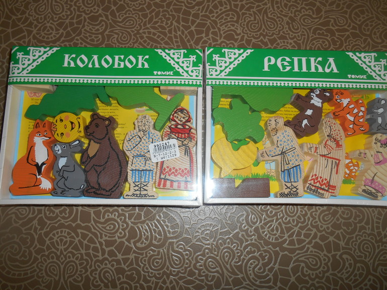 Долго смотрела на них, не знала нужно или нет. У нас есть пальчиковые икеевские куколки и животные. Детям нравится с ними играть, истории придумывают, решила взять, сценки будем ставить. Пусть сказки нам с мужем рассказывают, тем более знают они их хорошо. А колобок у нас еще в фаворите после нового мультфильма про колобка. Там такие герои колоритные, песня хорошая, пели долго всей семьей, советую и вам посмотреть. Забыла еще написать, наличие деревьев меня очень радует.