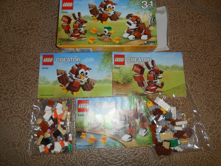 Закала на вырост своим девочкам. Люблю такие наборы, заказала еще джунгли. Потом покажу. В наборе три небольших мешочка с детальками, три брошюры с подробной инструкцией. Собрать можно белочку, сову, утку, собаку. При сборке животного у кого то крыльями можно двигать, собака вообще я так поняла может стоять и сидеть и уши подвижны, у белочки тоже подвижные части есть.