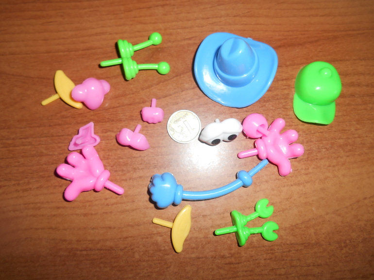 Он дороже конечно, но там детали крупнее. Там есть юбочки, туфли, шляпки. Есть глаза также, носы они небольшие, но больше, чем в этом наборе, еще сеть очки.