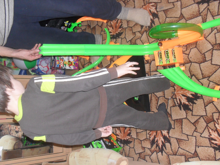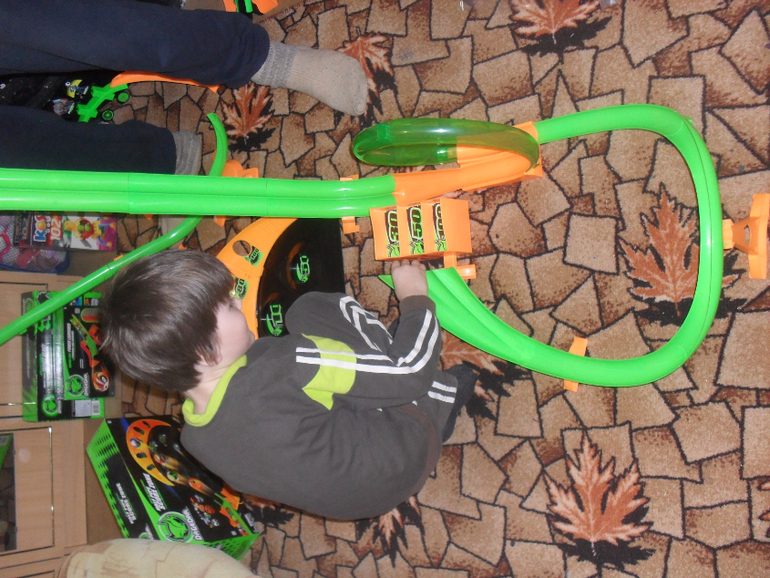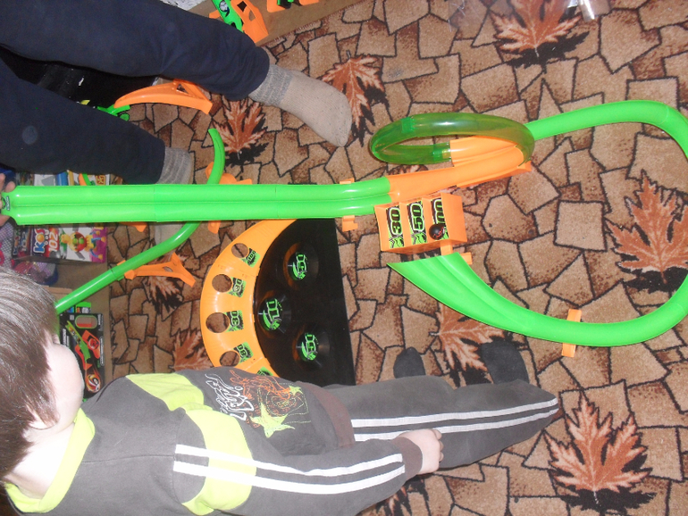 Насчет совместимости точно не знаю, у меня просто не очень с конструированием, да и из треков у нас только средний (который сам по себе полкомнаты занимает)), если несколько треков купить, то думаю возможно будет если не полностью объединить, то хоть как-то удлинить за счет отдельных частей трека. Место соединения деталей сфоткала (они в пазы вставляются)