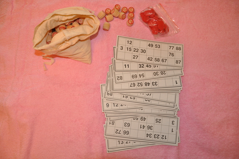 Традиционная Российская игра. В составе набора: 24 карточки из плотного картона, льняной мешок с утяжкой, 90 бочонков с четко прорисованными цифрами, пластиковые фишки в количестве 100 штук.