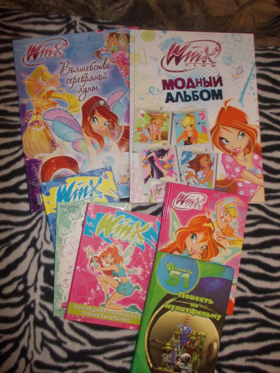 А старшая - фанатка Винкс, ей книг прикупила. "Модный альбом" и " Волшебство серебряной луны" вышли всего рублей по 60, а качеством я довольна. Бумага мелованная, куча цветных картинок и огромный размер, я думала, они поменьше будут. По содержанию пока не знаю, дочь еще не читала.