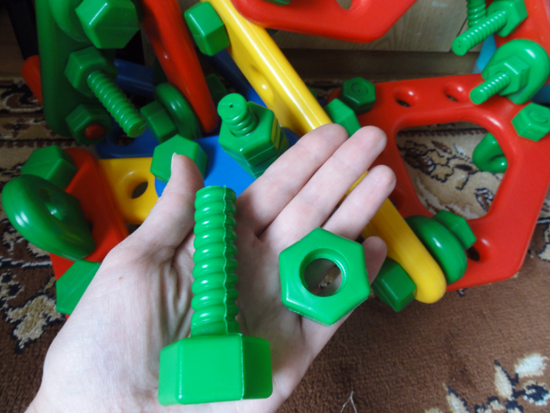 Детали большие, качество- мягкий пластик, гаечный ключ, который входит в набор (2шт) прокручивает. В общем так то ничего конструктор.