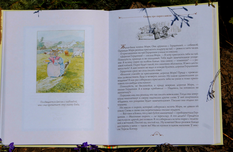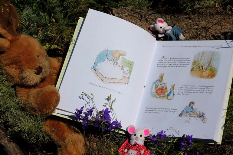 Книга меня очаровала она не реальная ...я рассматривала её в течении часа ....и не могла остановиться....в книге живут милые трогательные зверушки...в своем волшебном мире....вместе с иллюстрациями Беатрис Поттер сказка начинает жить и книга словно оживает) !!!!!!!!!!Книга очаровала не только меня но и моих детей...Варя в нетерпении тянет большущую книгу...и все наши зверушки уже получили имена...и как оказалось нашего любимого зайца всегда звали Питер!!!!!!!