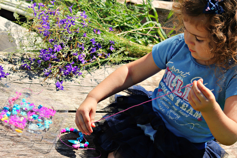 Мало того что ребенок занят интересным делом это же еще и очень полезно ...шикарное занятие для мелкой моторики!Я взяла 2 вида да еще и по 2 коробки...но бусинок и в 1 наборе очень приличное количество...есть где разгуляться фантазии) Кстати в наборе 2 длинные нитки резинки и 2 застежки !