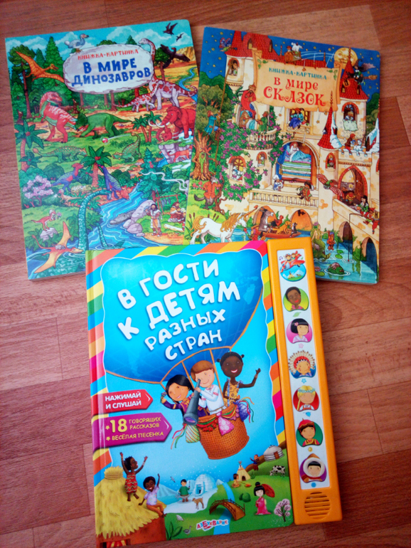 Еще парочку книжек прикупила, любители мы динозавров- мимо такой книги не смогла пройти (очень хорошая книга, большого формата, тут и подсказки с названием динозавров-что нам и нехватает, т.к. есть много фигурок, и как искалка), ну и в придачу в мире сказок взяла. В гости к детям разных стран давно глаза на нее смотрели, но вот решилась на нее, и не пожалела, ооочень клевая и большая книжка, описывать и фоткать ее небуду, многие уже писали о ней.