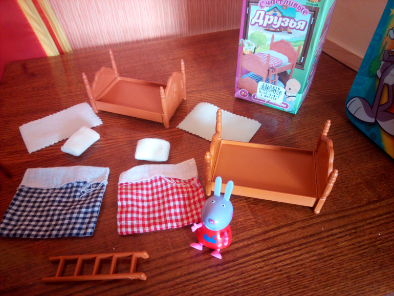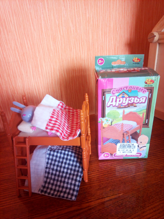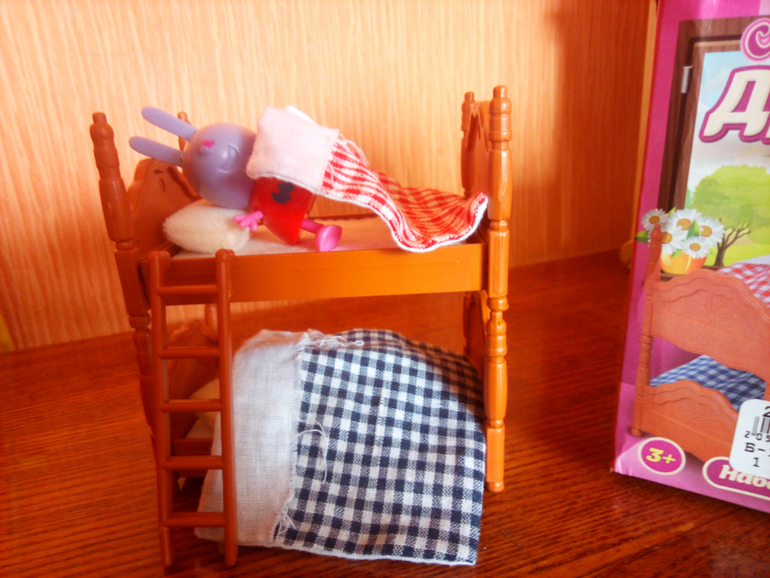 .Приобрела дополнение к нашему домику, как раз кроваток нехватало, очень качественно сделано, несмотря на то что одеяльце махрится (конечно не супер его сшили, но детям для игры вполне достаточно я считаю). Сделано из двух кроваток, можно как двухьярусную сделать, так и отдельно их поставить.