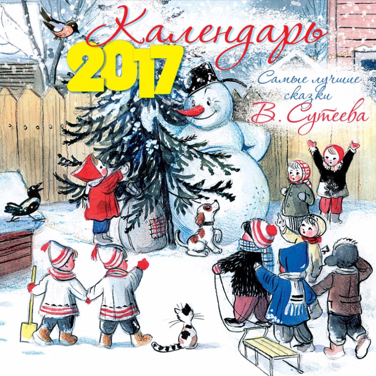 Самые лучшие сказки. Календарь на 2017 год«С новым годом» - кукарекает Петушок. «Ура!» - мяукает кот-рыболов. «Будьте счастливы!» - поздравляют из теремочка Мушка, Лягушка, Ёжик. Почему такое веселье, спросите вы? А потому, что все зверята радуются наступлению самого волшебного праздника в году и очень горды, что попали в календарь на 2017 год, который будет висеть на самом почётном месте в доме! Календарь с иллюстрациями знаменитого детского автора и художника В. Сутееева станет лучшим подарком под ёлочку! С Новым годом!