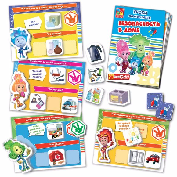 Магнитная игра "Здоровым быть - здорово!"Уроки на магнитах «Безопасность в доме» с Фиксиками - магнитная игра с любимыми персонажами, играя в которую, ребенок легко и весело выучит основные правила поведения с бытовыми приборами, химией и лекарствами, поймет как действовать в экстренных бытовых ситуациях. Особенности: мягкие магниты удобно брать рукой, легко перемещать по поверхности.