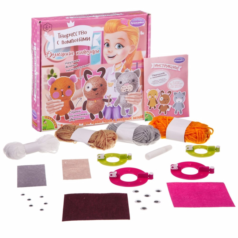 https://clck.ru/A7qPUНабор для творчества "Творчество с помпонами. На ферме"Набор "На ферме" из серии "Творчество с помпонами" от производителя Bondibon - это хорошая возможность приучить девочку к рукоделию с раннего возраста. Забавные барашки, цыплята и котики из помпонов обязательно понравятся ребенку, что сделает рабочий процесс веселым и увлекательным. В наборе имеется все необходимое для работы.