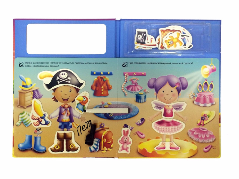 Рисуем и играем с волшебными нарядамиЭта книга поможет ребенку выучить профессии, понять, чем именно занимается тот или иной специалист, а также развить свои творческие способности. Вся познавательная информация преподносится в игровой и развлекательной форме: нужно дорисовать и дополнить картинку с помощью фломастера и магнитов.