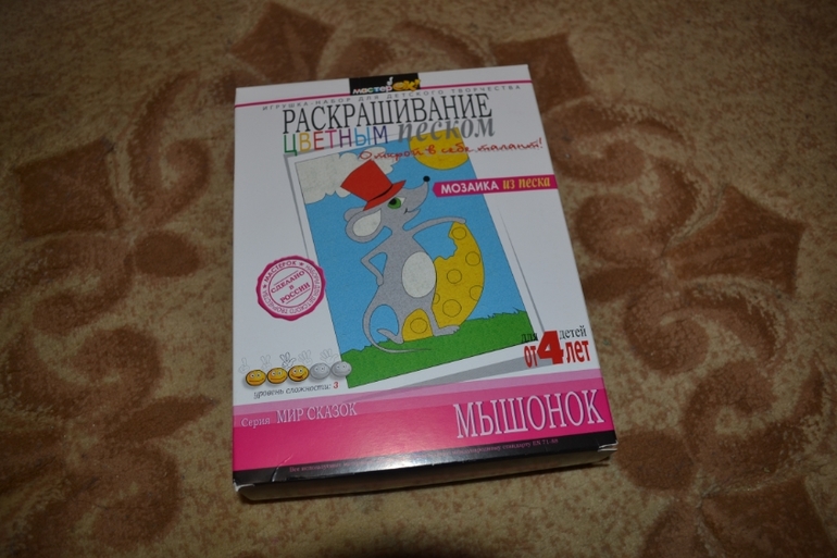На пробу взяла раскраску цветным песком,пока не пробовали.Хим.запаха нет