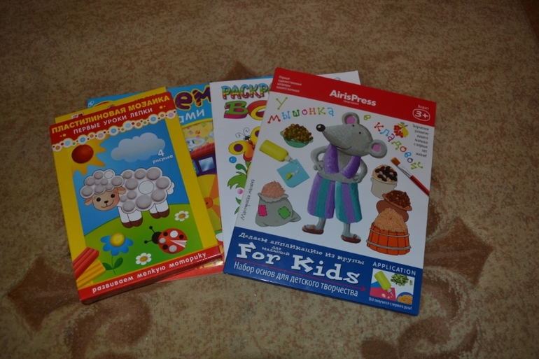 У пластилиновой мозаики в комплект входит пластилин и всего 4 картинки