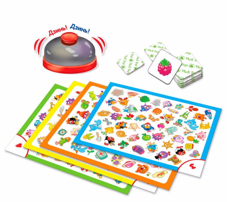 Игра со звонком "Глаз-Алмаз"2 игры в 1 коробке - веселый и активный досуг для всей семьи и копании друзей. "Глаз-алмаз" - для самых ловких и внимательных, "Бинго" - классическая игра для семейных посиделок. Игра напоминает адаптированное под детей лото и состоит из 8 игровых полей и 96 карточек с отдельными изображениями персонажей мультсериала "Смешарики". В комплект также входит звонок и инструкция с описанием вариаций игр.