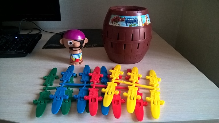 Это так, баловство. Захотелось. На коробке возраст 4+. Почему 4+ не понятно, тут делать то ничего не надо и деталей мелких нет. Летает пират прикольно. ))