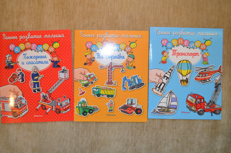 Для своего любителя техники заказала книжечки с наклейками из серии "Раннее развитие малыша"