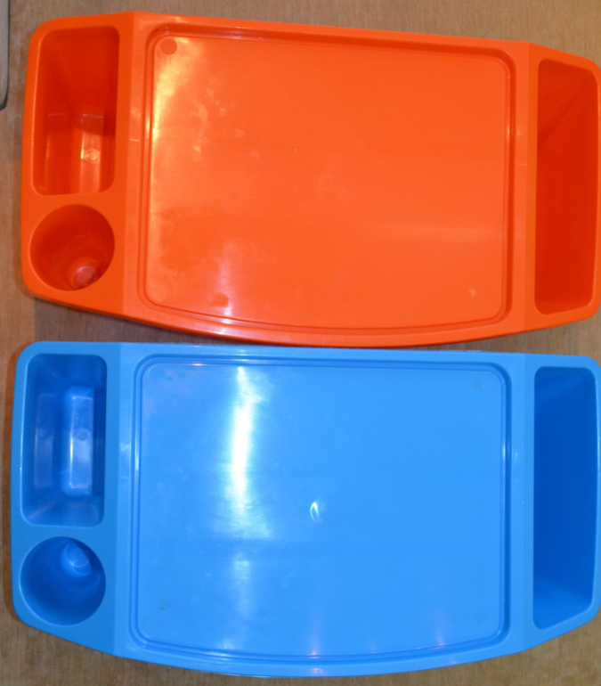 Очень-очень понравились мне и детям Подставки для игр, мандарин и голубая лагуна. Положила лист А4 для сравнения. Пластик не сильно толстый, но при аккуратном пользовании очень полезная и многофункциональная штука - дети уже и ели, и рисовали, и лепили, и гараж делали)
