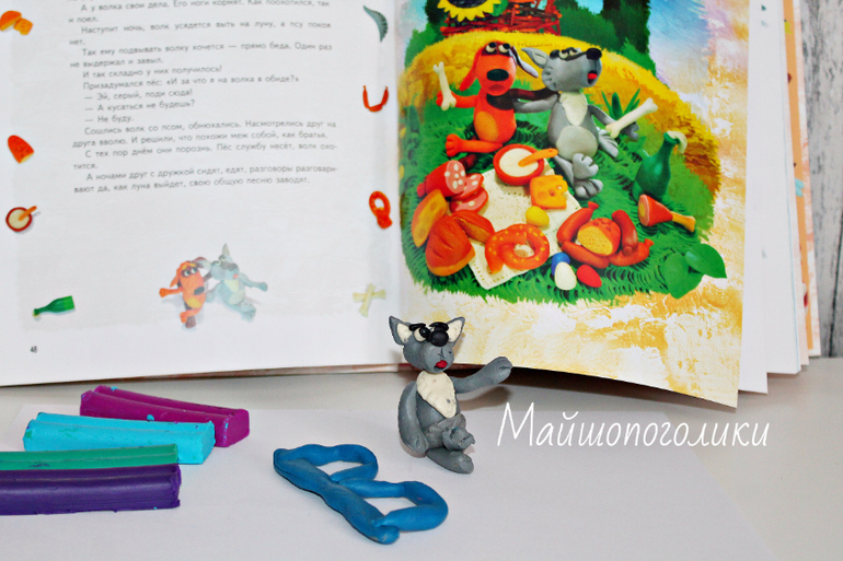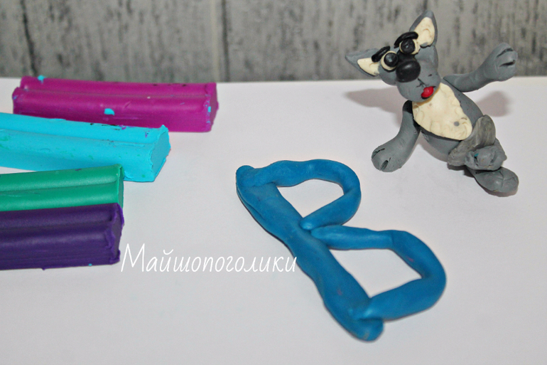 и слепили волка ( вот тут меня просто чудовищно подвел пластилин ...) но думаю сходство есть главное Вареник довольна и кажется букву В теперь четко помнит!!!!