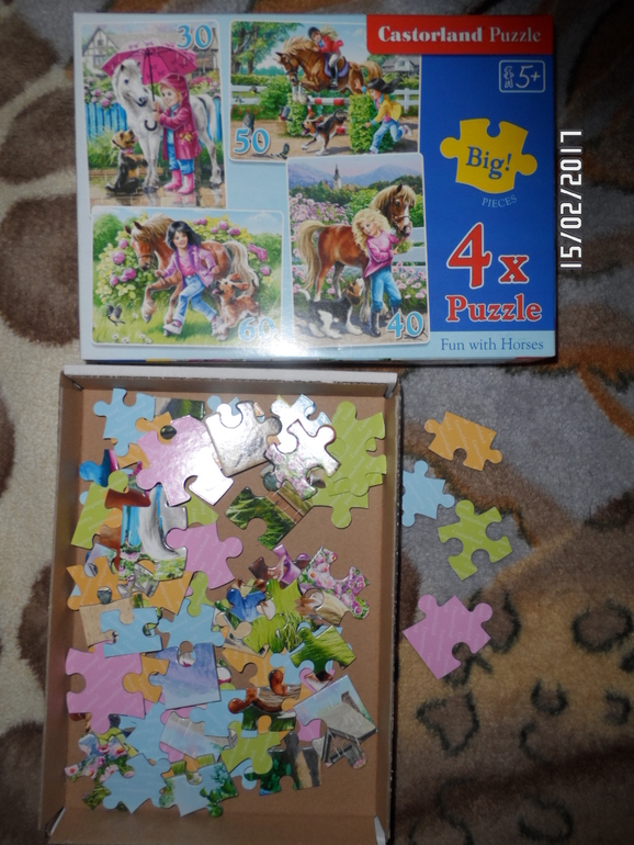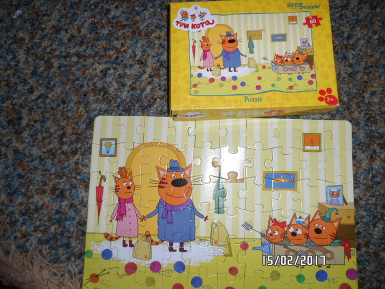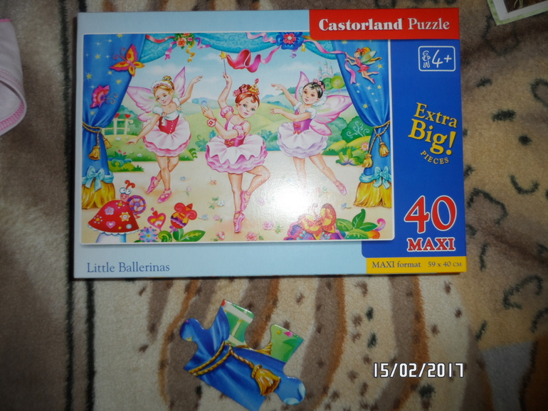 Пазл балерины, детали очень крупные!Пазл 4 в 1, каждого вида детали сзади своего цвета. Три кота тоже симпатичный пазл.![]()