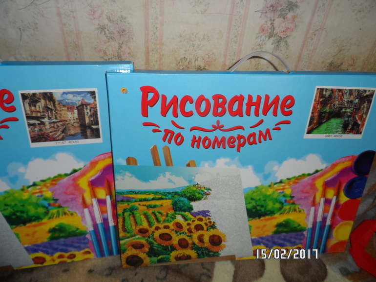 Взяла 2 набора по распродаже около 300р, холст на подрамнике, краски, кисти, крепежи все в наборе. У меня есть набор от Белоснежки, но стоил 800-все один в один, но не знаю ак само качество красок.