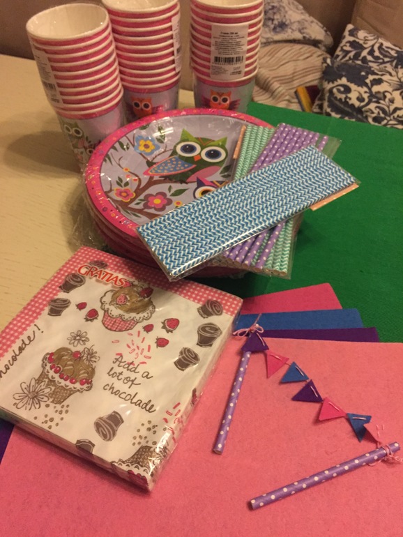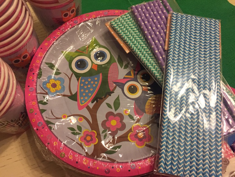 Вот как бывает: ждёшь, ждешь дополнительную скидку, а ее нет и нет... Получаешь заказ и вот вам доп.скидка)) но эта новость нисколько не опечалила моего впечатления от полученного сегодня заказа. Поскольку впереди день рождение дочурки, то я прикупила набор одноразовой посуды с совятами(http://my-shop.ru/shop/products/2587853.html и http://my-shop.ru/shop/products/2587858.html), трубочки для коктейля разных цветов (http://my-shop.ru/shop/products/2080006.html) и салфетки. Посуда вся из бумаги. Достаточно плотная. Цвета яркие, рисунки четкие. Мы довольны))
