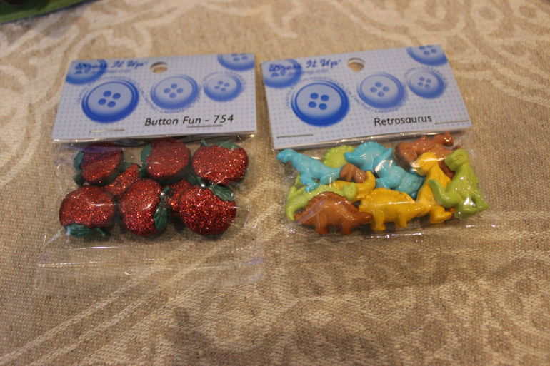 Пуговички, стразы и бусинки для творчества. Набрала много, захотелось мне обновить наши детали для поделок. Очень понравились пуговки серии Jesse James. Первыми у нас появились конфетки, пуговички мелкие, но очень милые. На каждой пуговке имеется маленькая петелька. Пуговички с цветочками из дерева, в наборе они двух форм - круглая и квадратная. Яблочки очень понравились, не маленькие, яркие и блестящие, и конечно динозаврики, ну очень клевые.![]()