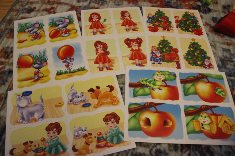 Игра "Истории в картинках". Взяла на пробу, такого рода игры у нас еще нет. Нужно разложить картинки в правильном порядке, чтобы получилась история. Несколько уровней сложности, от 4-х карточек до 8-ми. Отличное пособие за копейки.![]()