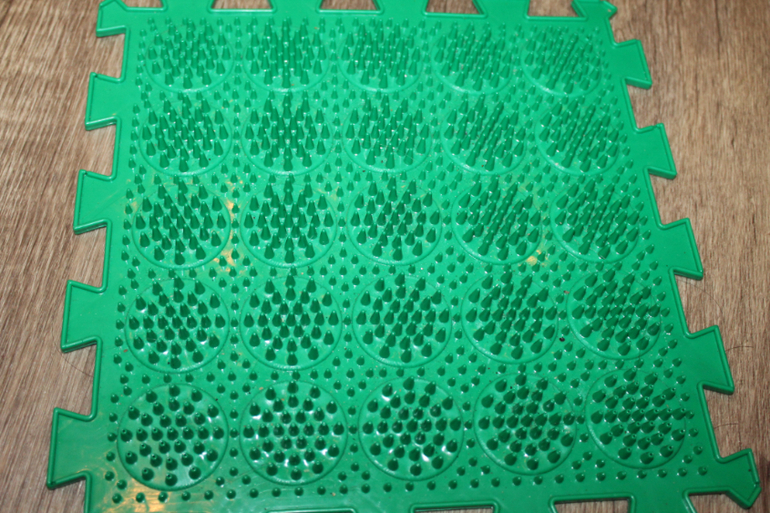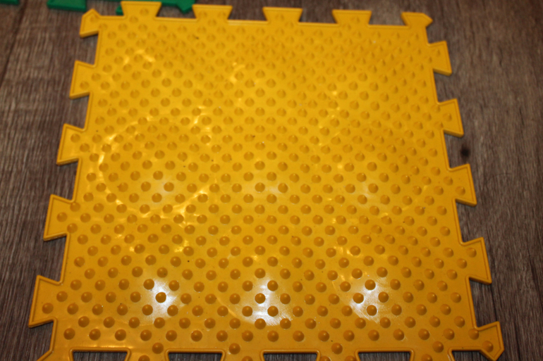 Сразу оговорюсь...снимать совсем не умею) но очень хотелось показать наглядно! когда покупала боялась что будут пылиться...и ходить дочь откажется...но нет она наоборот самая терпеливая...я так прыгать пока не могу!!!!!!!Мы в восторге полном! У нас небольшие проблемки с ножками и нам эти коврики рекомендовал доктор ....но как оказалось и полезно и приятно! Ходим всей семьей ...буду еще докупать несколько наборов ! Очень хочу с шишками)