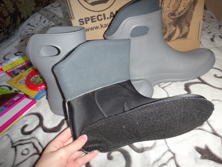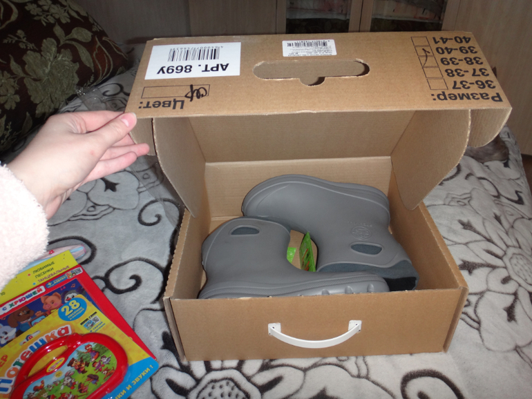 ну и и за них я пришлось по быстрому сформировать заказ ) Отличные ,если учесть что я их взяла за 710р ))) у меня размер 39 . поэтому сапожки взяла 39-40 . немножко грубо смотрятся на ножке ( сама виновата отрастила такую лапу ) =))) Но мне они ооочень понравились . так удобно в них ,не хотела даже снимать . Вообщем если с носком то на мой размер 39 идеально . без носка сапоги все таки 40р . если была бы возможность померить то я бы на размер меньше померила бы ,но не уверена в том что палец не упирался бы . вот )