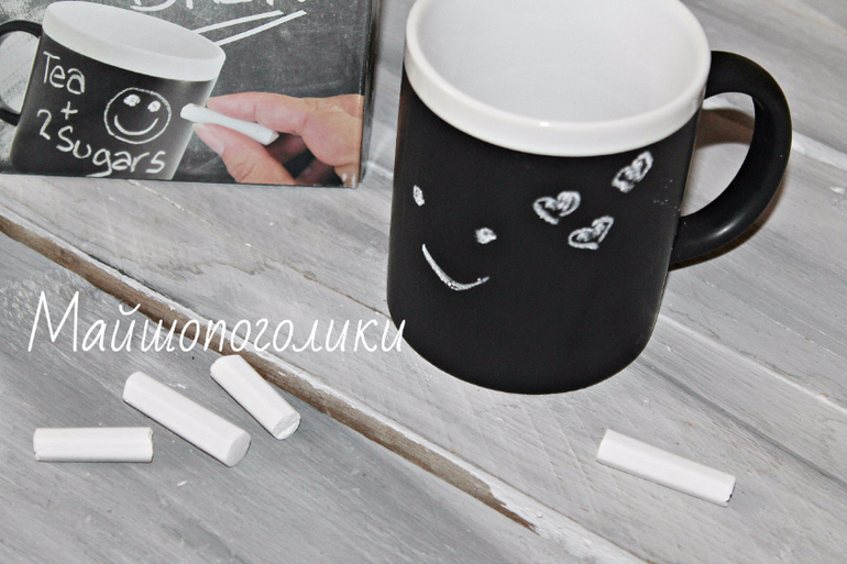 Кружка с мелком "Послание"Быстротекущее время зачастую не оставляет возможности не торопясь пообщаться, посидеть спокойно за чашечкой кофе. Но это не повод оставлять близких без внимания. Кружка с горячим напитком и шутливая записка прямо на ней помогут держать связь с любимыми людьми, даже когда нас нет рядом. Матовая чёрная кружка, имитирующая поверхность грифельной доски, укомплектована двумя специальными мелками, что позволяет наносить на кружку любые надписи и рисунки по вашему выбору.