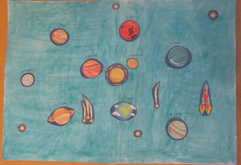 А потом я подписала планеты и рассказала сыну, что все они крутятся вокруг солнца. Те, которые ближе, сильнее освещаются солнцем, а самые далекие - самые холодные.