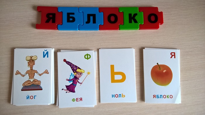 Игра понравилась. На каждую букву своя карточка с картинкой. Ими можно и отдельно играть. Карточек 4 вида - «гласные», «согласные твердые», «согласные мягкие» и «ь ъ ы».