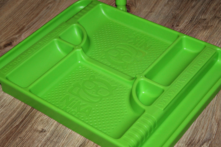 Высоту мольберта можно регулировать (от 75,5 до 110 см), ориентируясь по меткам, нанесенным на опору. С помощью магнитов на мольберте можно закрепить лист бумаги, чтобы рисовать красками или карандашами. Мольберт незаменим для творческих занятий с ребенком.