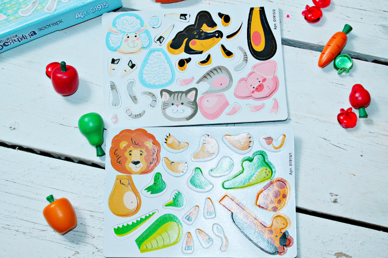 Магнитные истории "Всякая всячина. Зоопарк" 6 зверей рекомендуется детям от 3 до 5 лет. Бегемотик, лиса, медведь, ёжик, слоненок и зайка сделаны таким образом, что ребенок, перебирая лапки, хвостики, головы и туловища, может сложить или известного и узнаваемого зверя, или сотворить новое, никому не известное чудо-юдо, а с Вашей помощью придумает и расскажет историю об этом чудо-звере, о том, где он живет, что ест и с кем дружит.