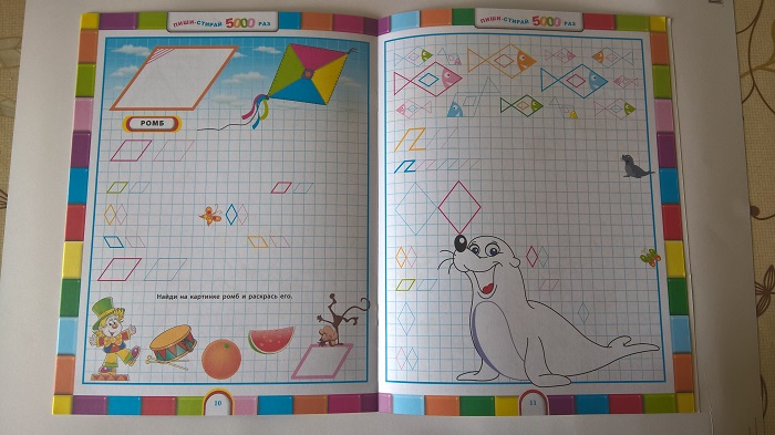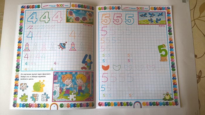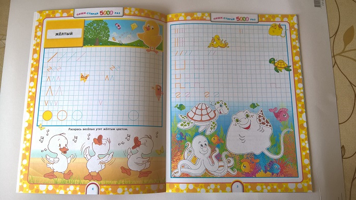 Еще одни прописи, на сей раз разноцветные. Бумага с пропиткой, но на счет "5000 раз" у меня большие сомнения.