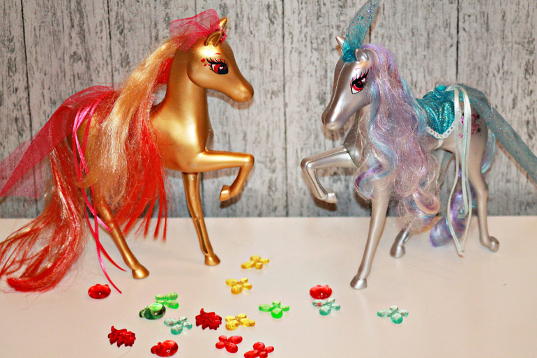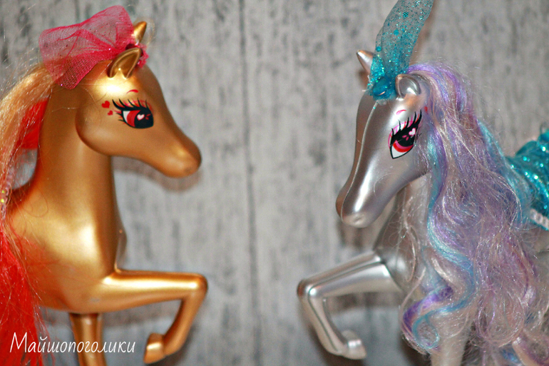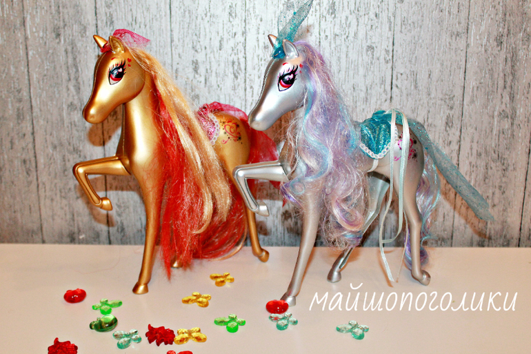 Нам повезло пришли лошадки двух цветов!!!!! Пластик прочный ....и каких то изъянов я найти не могу!!!!! Лошадка не цельная ...а как из двух частей...хвосты ...у нас много терпят...им чуть чуть качество получше..бы... и вообще был бы полный восторг)...но это меня как взрослую напрягает а Варюха их любит...это одни из самых востребованных игрушек!