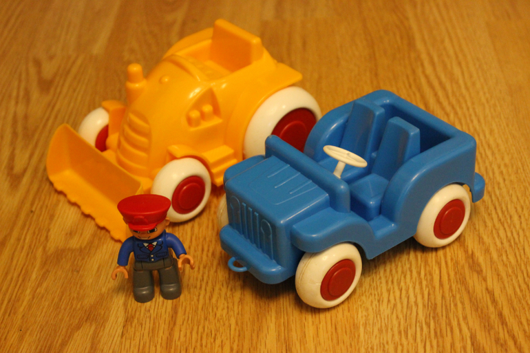 Джип и бульдозер Форма. Приятно, что уже полюбившейся нами производитель радует новинками. Сначала купили джип. Так он понравился сыну, что несколько дней не выпускал его из рук, даже брал на занятия и на прогулку с собой. Обожаю "Форму" за качественный пластик, хорошие цвета и резиновые тяжелые колеса. Действительно, не убиваемые игрушки. Бульдозер прекрасен, колеса огромные, поедет с нами на море ). Ковш неподвижен, но меня это не расстроило.