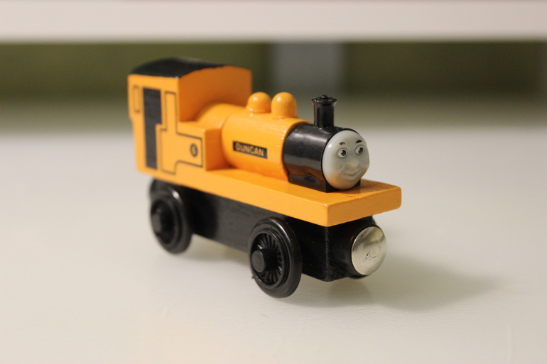 Деревянный паровозик. Взяла для разнообразия, у нас ж\д Брио. Понравился. Наверху немного видно косячки, но за 80 р я без претензий.