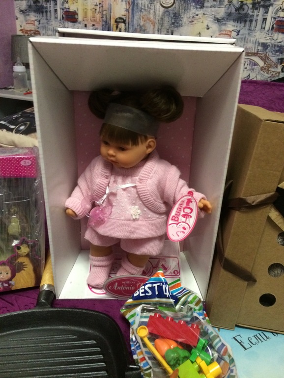 14 ну и куколка ее не было в списке подарков но я влюбилась в неё и было решено ляльку брать сказать что давольна насказать ничего нежнейший винил натуральные волосы очень приятно держать это чудо в руках она что-то должна говорить но я батарейки не стала проверим потом незнаю даже нужны ли они вообще