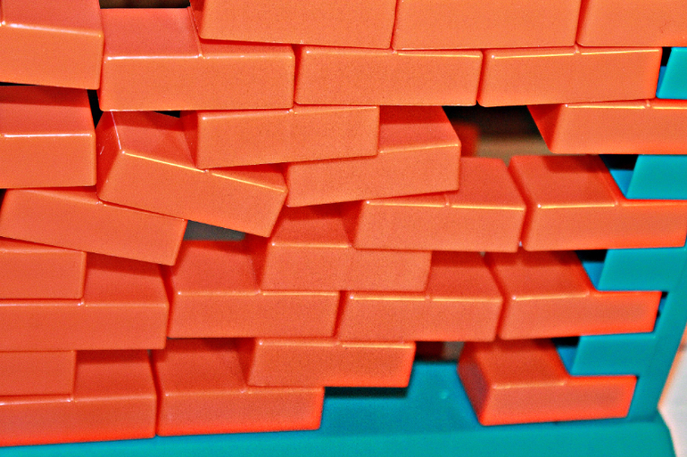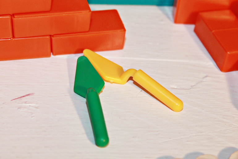 В наборе: рамка для стены, кирпичики, фигурка кота, 2 шпателя.