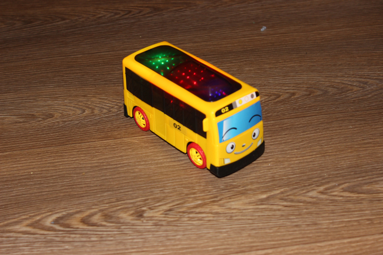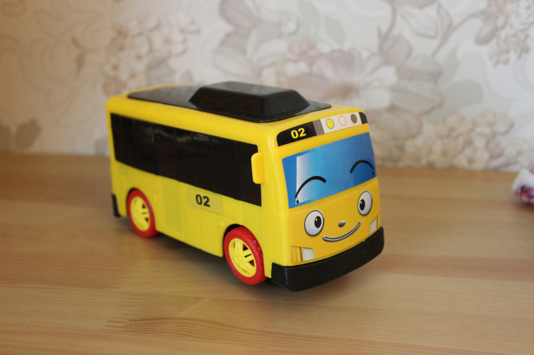 Автобус Тайо. Удивил размер, я думала, это будет миниатюрный автобус для детской ручки, а он поболее. Пластик так себе, наклейки тоже. Но! Автобус клевый. При включении начинает ездить, светится разными огоньками и если врезается в препятствия, то разворачивается. Также при езде играет музыка, однообразная и компьютерная, но ребенок от автобуса в восторге! Работает от трех пальчиковых батареек, в комплект не входят.