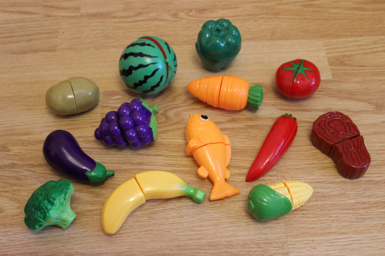 Наборы продуктов на липучках "Помогаю маме" и Shantou Gepai. Хорошие яркие продукты за свою цену. В каждом наборе доска и ножик, а в наборе с фаст-фудом еще тарелочка и вилка и на фото не хватает батона хлеба (куда-то затеряли). Липучки держат хорошо, у нас только в арбузе слабоваты, из набора Помогаю маме.