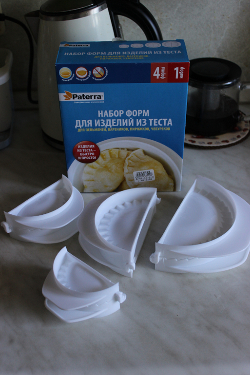 Набор форм "Paterra" для приготовления пельменей, вареников, пирожков, чебуреков. Хорошие качественные формочки. В деле пока не пробовала, но мне кажется все получится ). Пластик хороший, толстый.