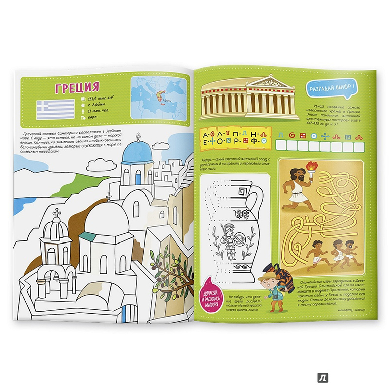 В тетрадях красочная краткая (совсем краткая) информация о разных странах мира, всего 47 стран во всех тетрадках. Например, про Англию: площадь, столица, численность населения, валюта, буквально по одному предложению про Биг-Бен, Тауэрский мост, Букингемский дворец. И задания, типа раскрасить, найти на картинке заданные элементы, пройти лабиринт, расшифровать надпись и т.п. Для каждой страны надо отыскать на вкладке с наклейками ее флаг и приклеить. К первой тетрадке в виде обложки прилагается довольно плотная карта мира, куда тоже нужно вклеивать наклейки. Например, для той же Англии - Биг-Бен.