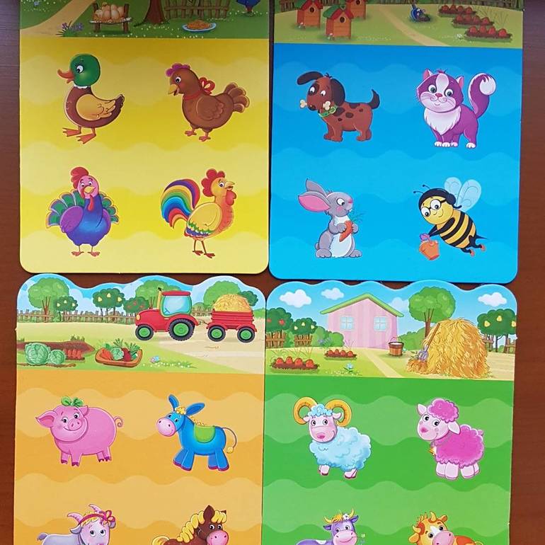 Заказала дочке лото Ферма. Качество очень хорошее. Плотный картон и яркие цвета. Возраст указан +3, но моя в 1.3 уже собирает. Лото поможет выучить малышам зверей и соотносить цвета.
