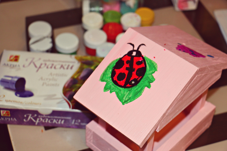 Немного о кормушке! Это отдельная история...приходит она в виде чудо конструктора...который предлагают склеить клеем пва) Какой запах у этих деревяшек...они так вкусно пахнут лесом!!!!!!!!!! С пва мы эксперементировать не стали и собрали на супер пупер клей!!! На этом работа взрослых окончена...ах нет...еще с рисунком чуть чуть помогла...но покрасила и раскрасила все Варя самостоятельно!