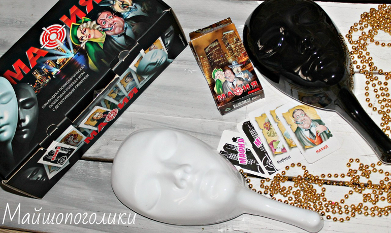 Комплект для игры в Мафию с масками может стать отличным подарком, также его можно приобрести перед встречей с друзьями и провести тематическую вечеринку.