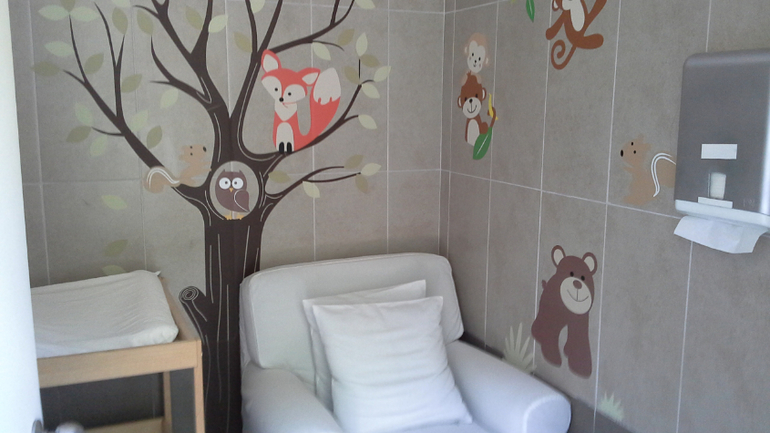 Есть на территории детская комната для малыша с мамой, где можно грудным детям спокойно переодеть памперс и перепеленать. ( фото будут) и кошкин дом ( фото есть)