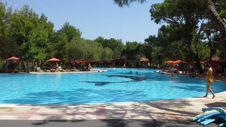 Продуманно все! Амфитеатр и горки с бассейном вынесены в ту часть, откуда корпусам ничего не слышно. Главный ресторан отеля находиься на цокольном этаже главного здания, и попасть в него можно с 2х сторон обоих блоков корпусов. Детский клуб тоже имеет два входа: зимний изнутри здания и летний. Находится в главном здании. Есть junior club, концепция которого для подростков разработана с этого года..